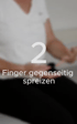 Übung 2 - Finger gegenseitig spreizen: Die Finger durch das Zusammenführen der Hände spreizen, dabei den Unterarm einmal nach innen und außen drehen.
