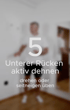 Übung 5 - Unterer Rücken aktiv dehnen: Den unteren Rücken durch Drehen in der Ecke dehnen. Zusätzlich den Körper seitlich neigen und dabei das Becken zur gegenüberliegenden Seite schieben, beide Übungen jeweils 30 Sekunden - zwei Durchgänge.