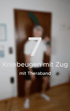 Übung 7 - Kniebeugen mit Zug: Die Kniebeuge durch Zug von oben verbessern. Das Theraband mit der linken Hand festhalten und am Ende der Kniebeuge mit der rechten Hand den Boden berühren. Den Oberkörper nur leicht nach vorne neigen, 30 Sekunden anschließend die Seite wechseln.